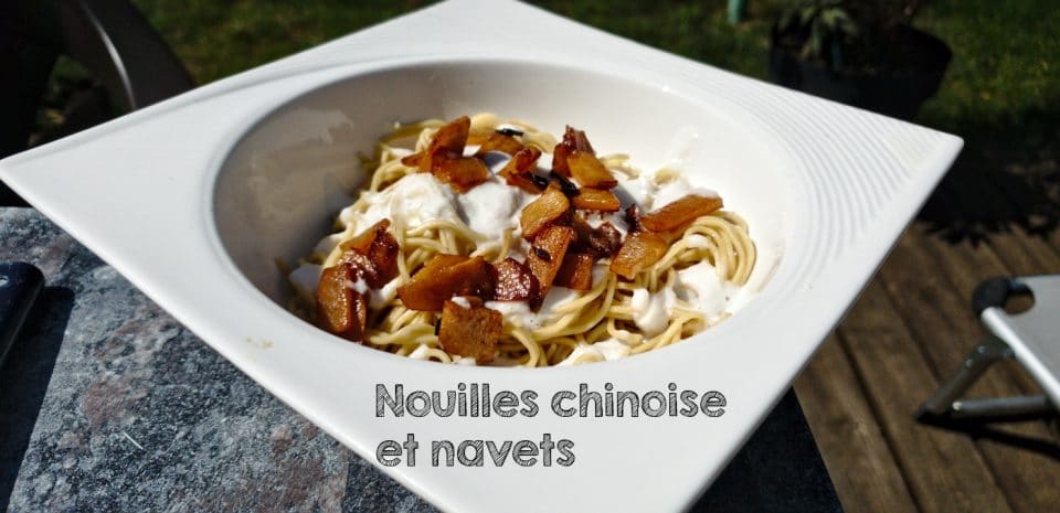 Mais tous les produits ne s’écoulent pas comme voulu et notamment le navet nouveau. Avec cette recette j’essaie de sortir un peu des plats traditionnels pour essayer proposer le navet dans une version nouilles chinoises, en jouant sur une préparation légèrement sucrée et une crème.
